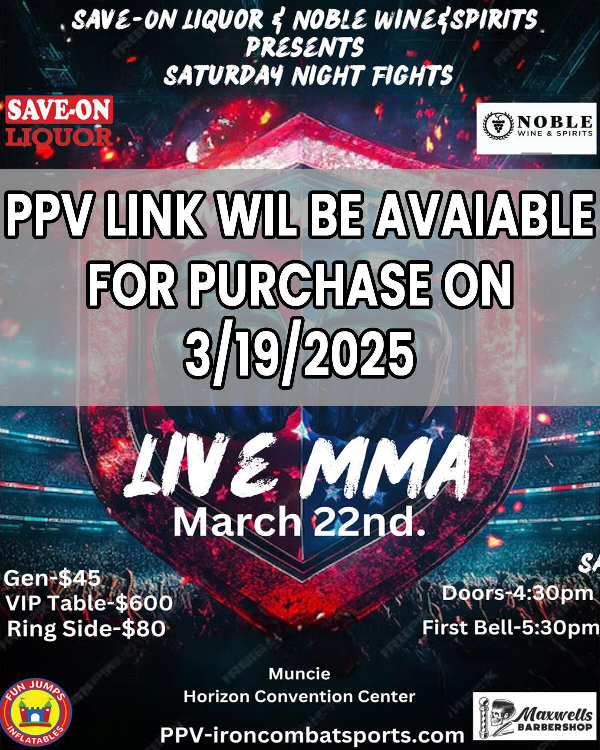 Get ready to experience the adrenaline-fueled rush of Iron Combat Sports' PPV event on March 22nd - the ultimate showcase of skill, determination, and heart in combat sports competition.